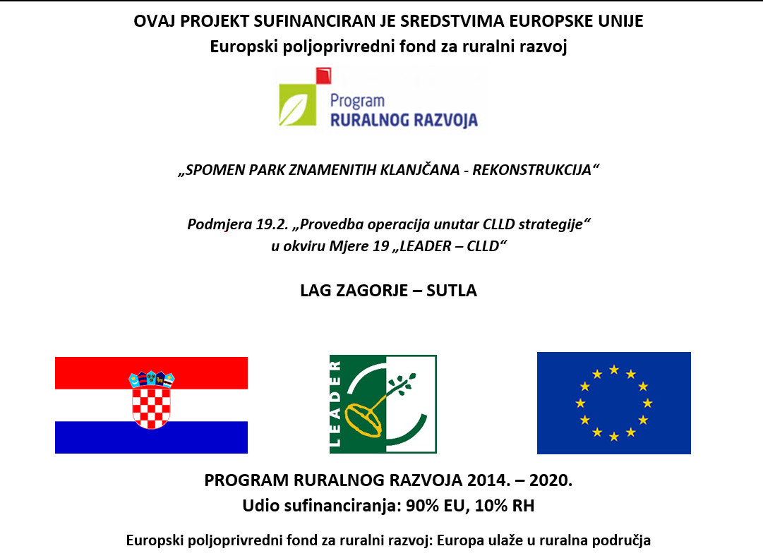 Projekt je usmjeren na rekonstrukciju postojećeg Spomen parka znamenitih Klanjčana, nekadašnjeg klanječkog groblja koje je danas uređeno kao spomenik parkovne arhitekture i spomen područje na kojem su ostali sačuvani grobovi Antuna Mihanovića, Otona Ivekovića i Krste Ivekovića. rnOpći cilj projekta je uređenje postojećeg Spomen parka s ciljem stvaranja adekvatnog prostora, amfiteatra, na kojem će se održavati razne prigodne manifestacije na otvorenom, s ciljem promocije kulturne i povijesne važnosti Grada Klanjca, poznatih Klanjčana te obogaćenje postojeće kulturno-turističke ponude. Na taj način će se unaprijediti spomenik parkovne arhitekture i spomen područje u sklopu koje će se, na postavljenim kamenim blokovima, uklesati stihovi originalne pjesme „Horvatska domovina“ autora hrvatske himne, Antuna Mihanovića. rn
